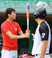 2011.06.15 17: 57김광현,'민호형! 배트 생각보다 무겁네'