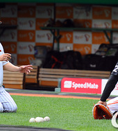 2011.06.15 18: 06사인볼 건네받은 강민호,'광현아! 형 마음 알지?'