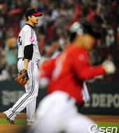 2011.06.17 20: 35주키치, '7회, 최정에 첫 안타 허용'