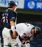 2011.06.21 19: 07강민호,'악! 몸에 볼 맞았어!'