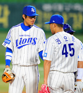 2011.06.23 21: 42권오준-현재윤,'4연승의 기쁨을 나누며'