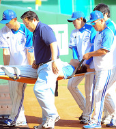 2011.07.05 16: 56실려가는 채태인,'큰 사고가 아니길'