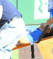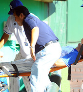 2011.07.05 16: 59실려가는 채태인,'경기도 시작 안했는데...'
