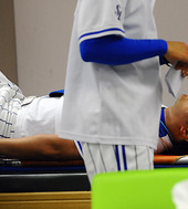2011.07.05 17: 04'허리통증으로 훈련중 실려가는 채태인'