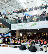 2011.07.08 16: 15환영 인파에 둘러싸여 인사말 전하는 조양호 유치위원장