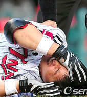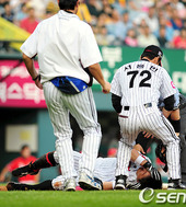 2011.07.09 18: 57사구에 머리를 맞고 쓰러지는 이진영
