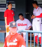2011.07.13 18: 09최정-정우람-정대현,'고든! 메이저리거 투구 구경해보자'