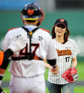 2011.07.14 18: 55'시구' 이슬기 아나, '싱글벙글'