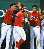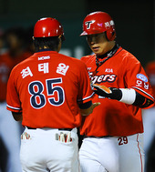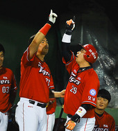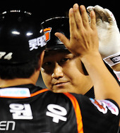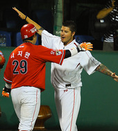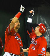 2011.07.20 20: 38최희섭,'지완아! 오늘은 내가 세리모니 해줄께'