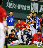 2011.07.23 20: 09박정권-최형우,'뜨거운 포옹'