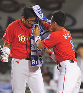 2011.07.23 20: 14홈런왕 박정권,'근우야! 땀 좀 잘 닦아봐~'