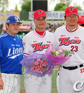 2011.07.28 19: 23진갑용-최희섭, '이범호 1000안타 달성 축하해'