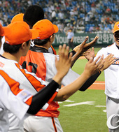 2011.07.29 22: 28김성근 감독, '고든, 한국서 첫 승 축하해!'