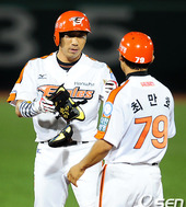 2011.07.29 22: 19정근우의 격한 축하 받는 안치용