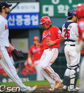 2011.08.03 19: 05이병규-정상호,'홈에서 충돌!'