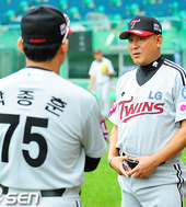 2011.08.03 17: 27박종훈-김기태,'필승 전략에 대해 의논중'