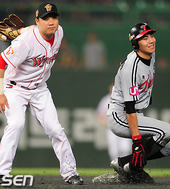 2011.08.03 20: 48김태완,'도루 실패 후, 믿을 수 없다는 표정!'