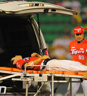 2011.08.03 20: 46응급차 실려가는 안치홍,'큰 부상이 아니길'