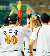 최동수,'만루포 승리, 미소가 절로'