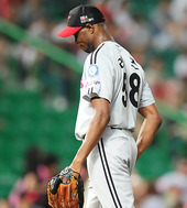 리즈,'6회교체, 아쉬움에 고개를 떨구며'