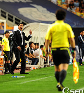 2011.08.06 20: 29유상철 감독, '오늘 경기 답답하네'