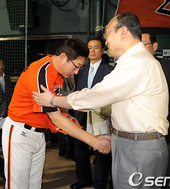 2011.08.07 20: 57김승연 회장, '한대화 감독, 오늘 정말 멋진 경기 였어요'