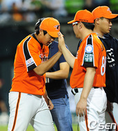 2011.08.07 20: 42김상훈-서재응,'완승의 기쁨을 나누며'
