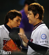 2011.08.10 20: 52김선우-손시헌, '반드시 승리한다'