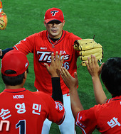 2011.08.13 19: 10서재응, '아이고! 하이파이브 많기도 해라'
