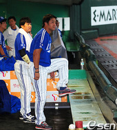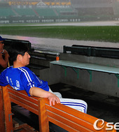 2011.08.16 17: 59류중일 감독,'폭우를 바라보며 생각에 잠겨'