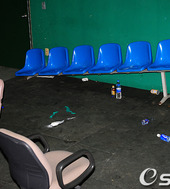 2011.08.18 22: 32팬들의 난입으로 박살난 의자와 쓰레기들