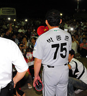 2011.08.18 22: 55'팬들 앞으로 나서는 박종훈 감독'