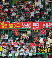 2011.08.18 19: 51플래카드를 들고 김성근 감독의 이름을 외치는 SK팬들