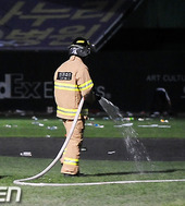 2011.08.18 21: 44물뿌리는 소방수와 쓰레기 치우는 직원들