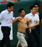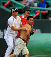 2011.08.18 18: 40김성근 감독의 퇴진에 항의하며 그라운드 난입한 SK팬
