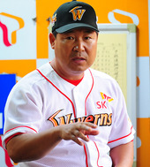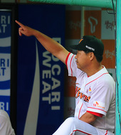 2011.08.18 18: 44이만수 감독대행,'덕아웃 앞으로 걸터앉아 지시!'