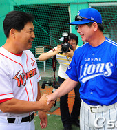 2011.08.18 17: 04이만수-류중일,'함께 악수를 나누며'