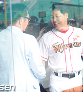 이만수 감독대행,SK 신영철 사장과 포옹!