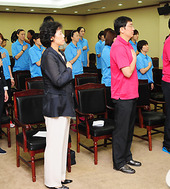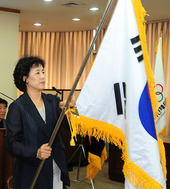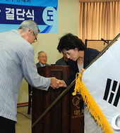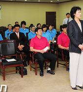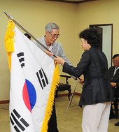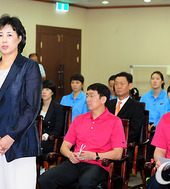 2011.08.18 12: 29단기를 받는 강현숙 여자농구 대표팀 단장