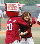 2011.08.21 19: 55넥센 치어리더, '야구공 드려요'