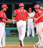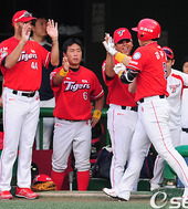 2011.08.21 19: 53김주형, '만루포 하이파이브'