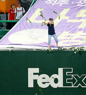 2011.08.23 21: 42화난 SK 여성팬, 그라운드에 국화 투척