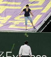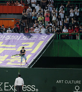 2011.08.23 21: 36그라운드에 국화 던지는 뿔난 SK 여성 팬