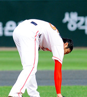 2011.08.24 19: 15엄정욱, '모자가 벗겨졌네'
