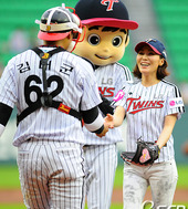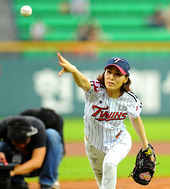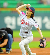 2011.08.25 19: 01장혜진, '시구하고 싱글벙글'
