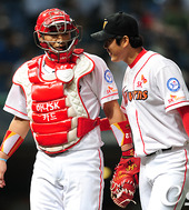 2011.08.25 21: 03정상호-박희수, '만루 위기 넘기니 웃음이 절로 나네'