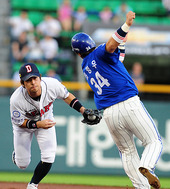 2011.08.26 18: 53오재원, '최형우, 아슬아슬 찜'