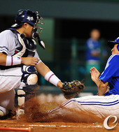 2011.08.26 21: 37양의지, '배영섭, 내가 막는다'