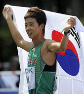 2011.08.28 11: 23男 20km 경보 6위 김현섭, '태극기 세리머니'