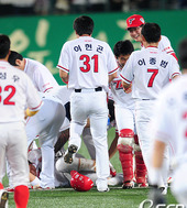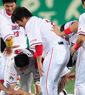 2011.08.28 19: 58'안치홍의 끝내기 안타 격하게 축하하는 KIA'